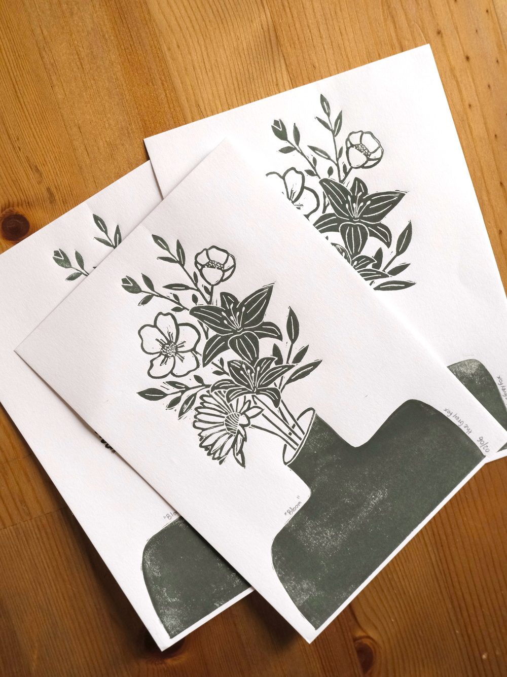 Due to the nature of printmaking, each linoprint is one of a kind so it may