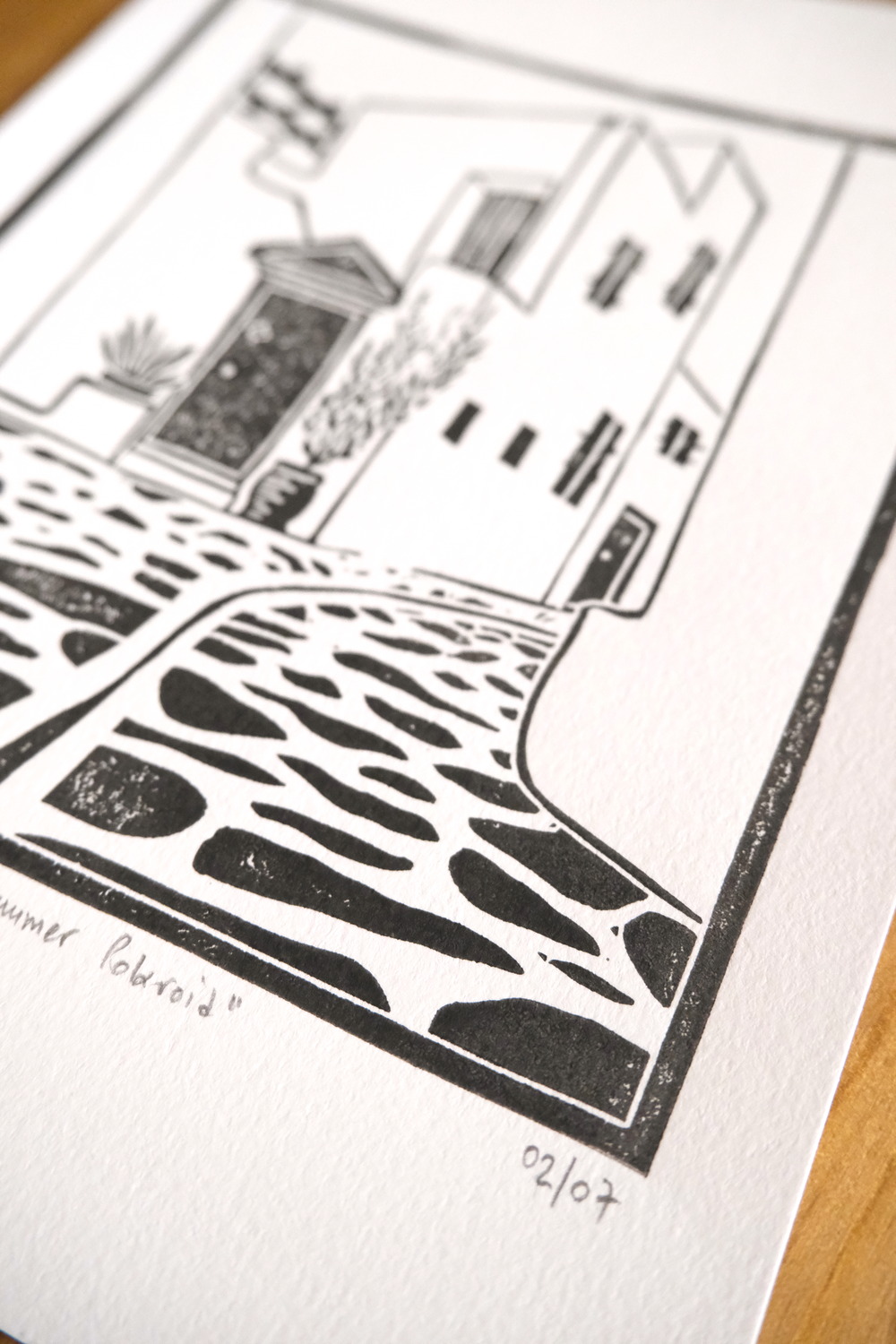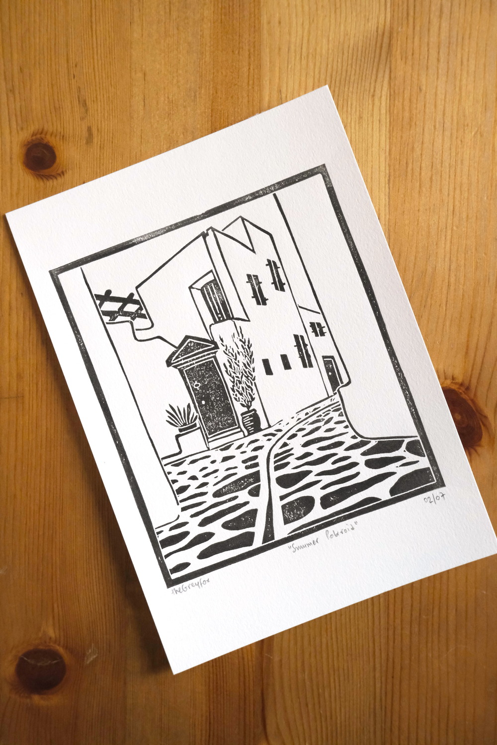 Due to the nature of printmaking, each linoprint is one of a kind so it may