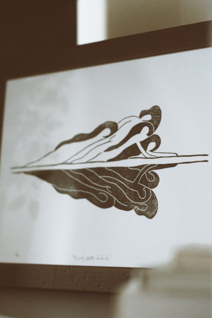 Due to the nature of printmaking, each linoprint is one of a kind so it may