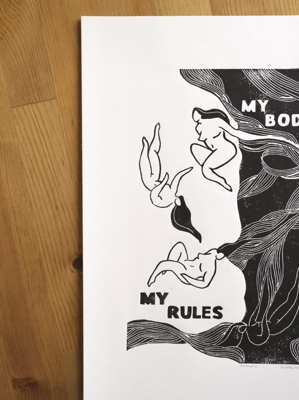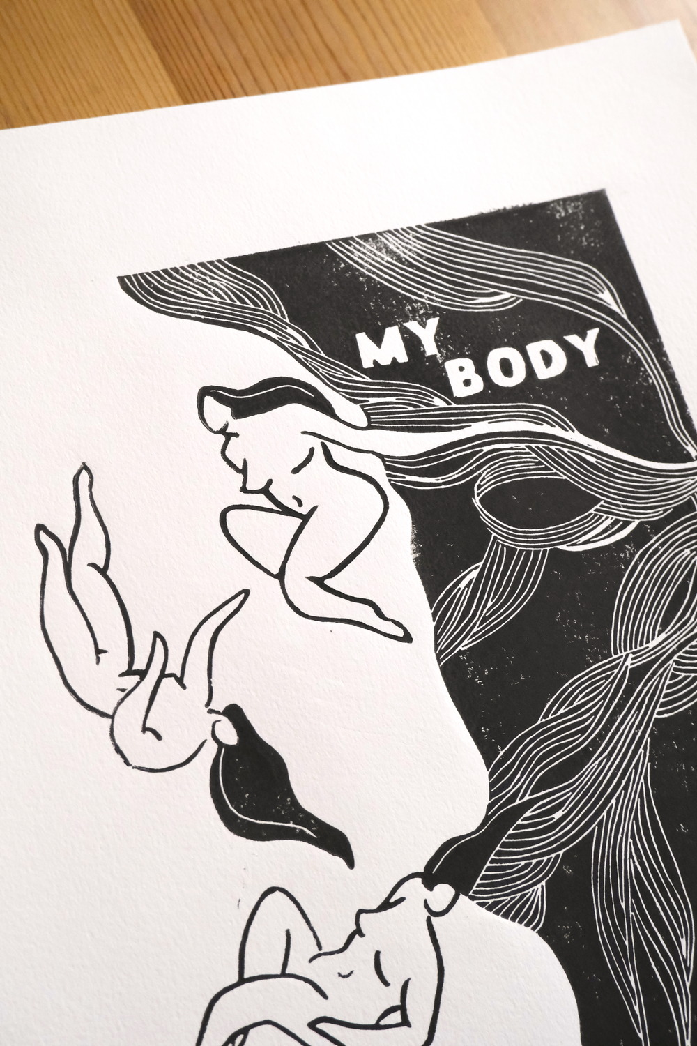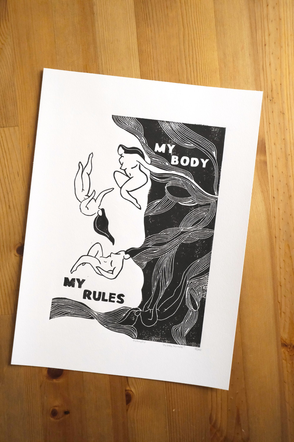 Due to the nature of printmaking, each linoprint is one of a kind so it may