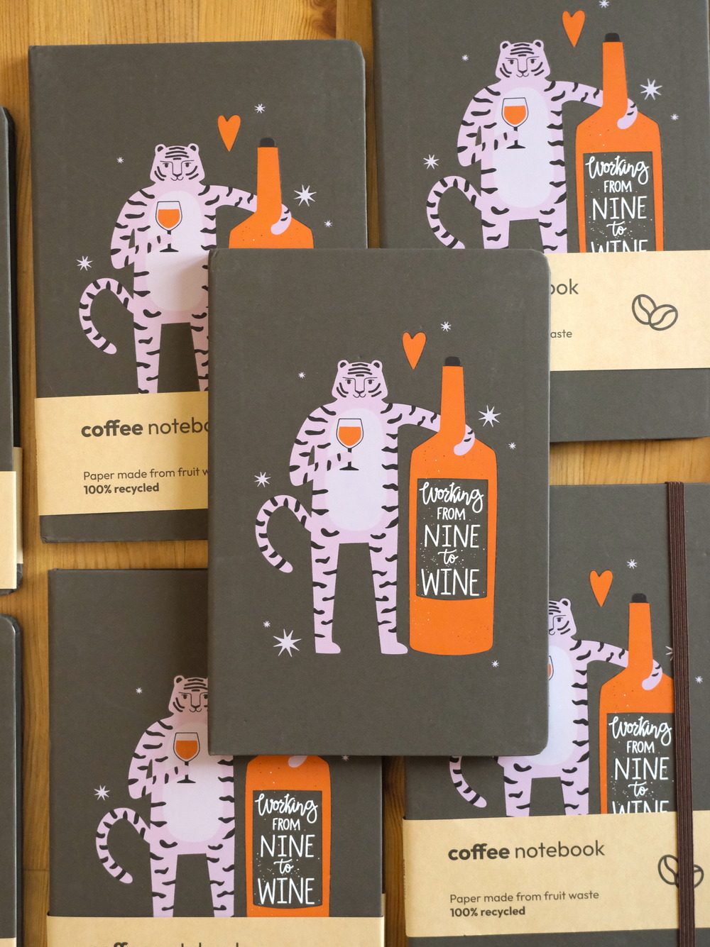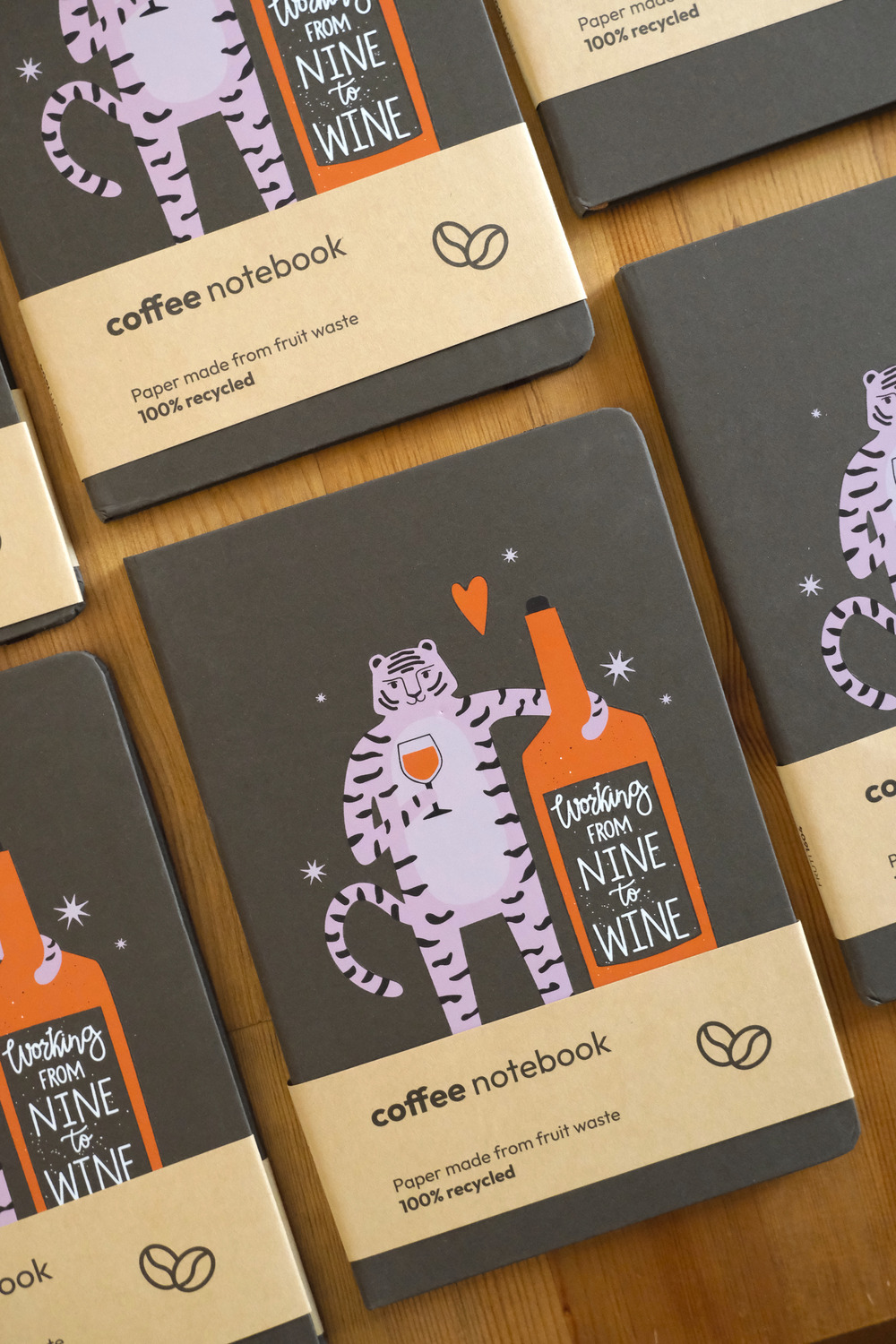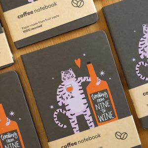 Recycled Coffee food waste Notebook with DFT printing design